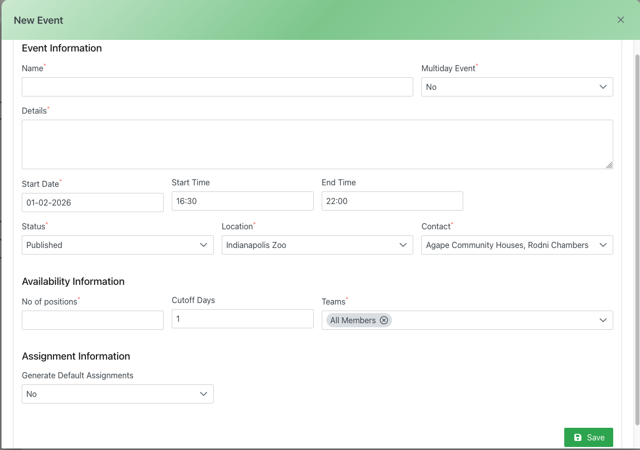 - Contact: Assign a primary contact person for the event