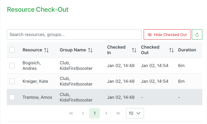 - Checked In: Timestamp when the resource arrived (sortable)