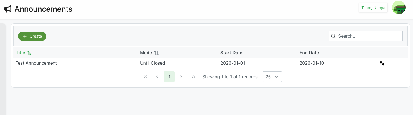 - Auto-Expiration: Announcements automatically stop displaying after End Date