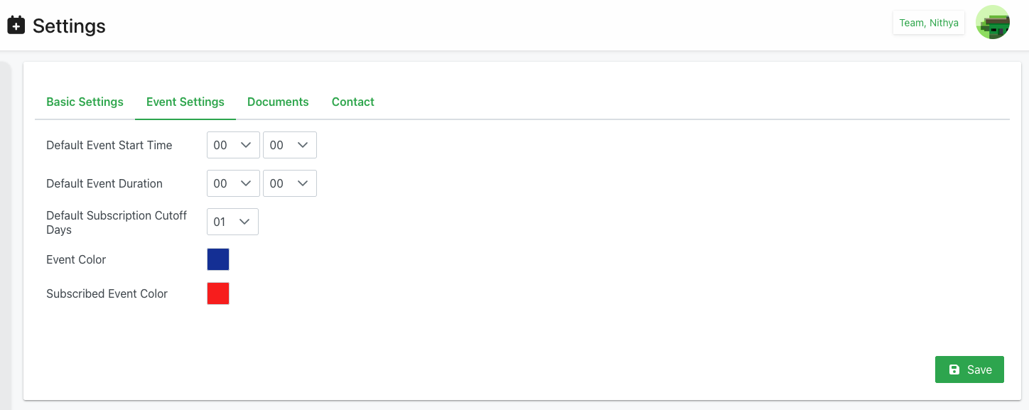- Event Settings - Default event configuration and colors